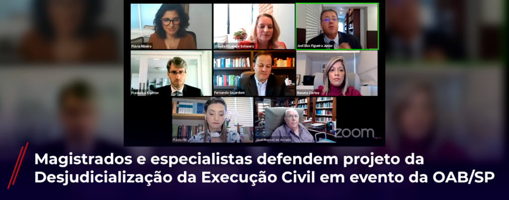 12/04/2021 Magistrados e especialistas defendem projeto da Desjudicialização da Execução Civil em evento da OAB/SP Ver notícia